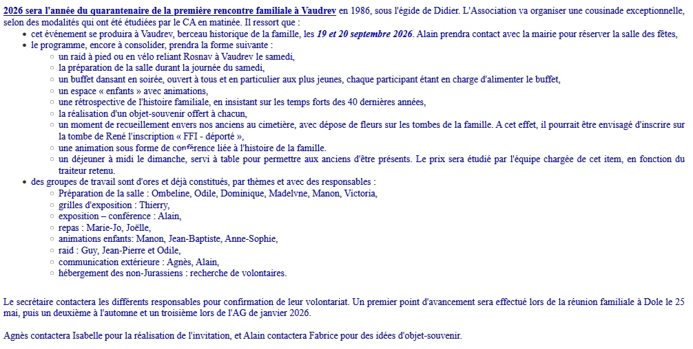 Prochaine Réunion: Samedi 31 janvier 2026 chez Marie Jo et Michel à Besançon